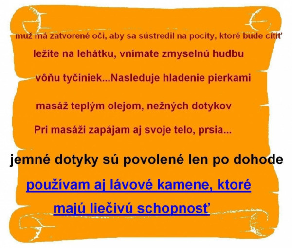 Čo je tantra?...úžasný relax, psychické, fyzické uvolnenie... viac informácií v textových fotkách..používam čiastočne nuru masáž, prsiami, zadočkom